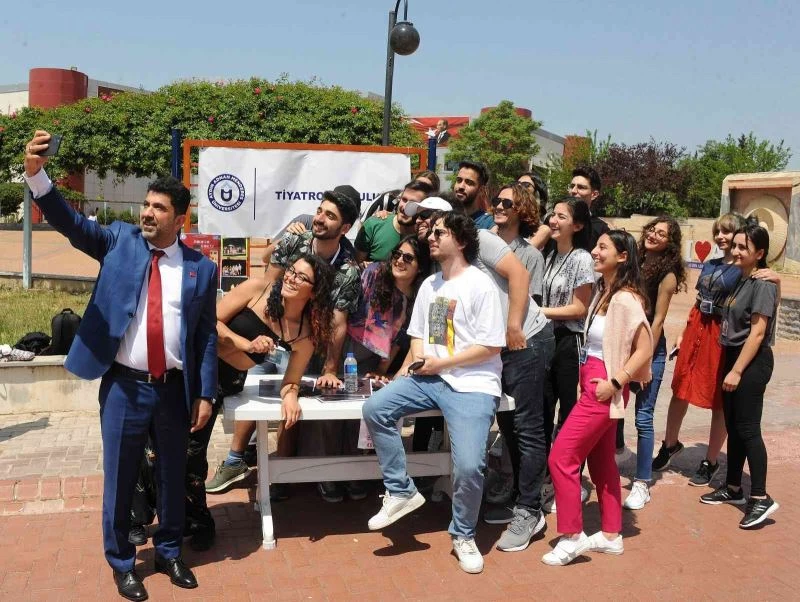 Aydın Adnan Menderes Üniversitesi (ADÜ) Rektörü Prof. Dr. Osman Selçuk Aldemir, Tiyatro Topluluğu standını ziyaret ederek çalışmaları hakkında bilgi aldı.