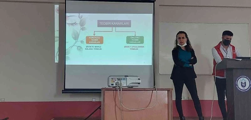 Sosyolog Melis Top’un konuşmacı olarak katıldığı seminerde; Güçlü Kadın, Güçlü Aile, Güçlü Toplum ilkesiyle kadına yönelik şiddetle mücadelenin önemi vurgulanarak; şiddetin hem bireysel hem de toplumsal olarak büyük bir problem olduğu ifade edildi. Çocukların şiddete tanıklık etmemesi gerektiğini dile getiren Sosyolog Melis Top, ailede şiddeti ve aşağılayıcı davranışı gören çocukların olumsuz etkilendiğini belirterek şiddetin türleri, şiddete maruz kalanların yararlanabileceği haklar, şiddet uygulayan kişiler hakkında alınabilecek kararlar hakkında bilgi verdi.