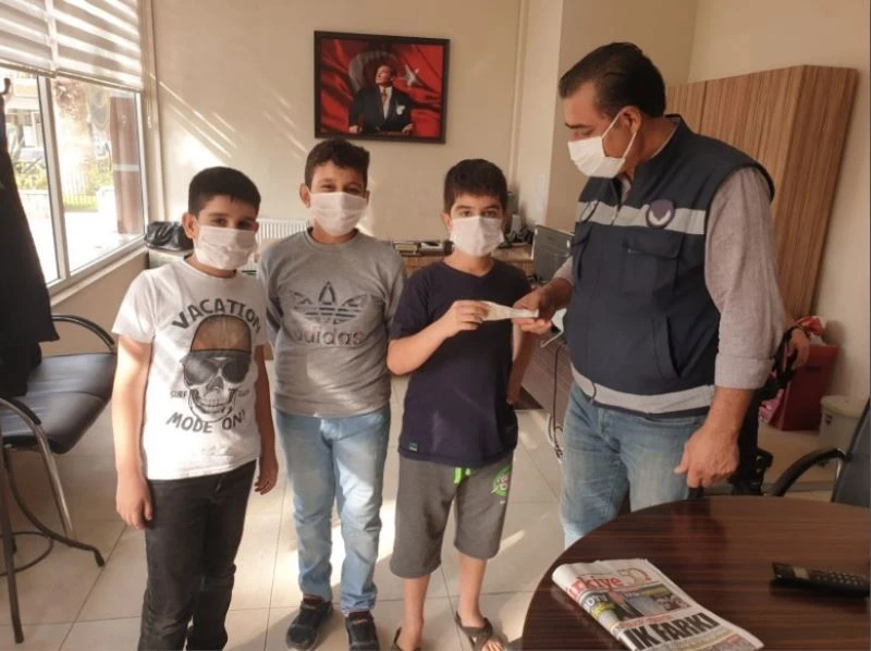 Denizli’nin Sarayköy ilçesinde yaşayan Hamza Eren Gültekin, İsak ve Mirhan Tekgül isimli 3 çocuk, mahallelerinde bulunan pazar yerinde oyun oynamak için gittiler. Bir süre burada vakit geçiren çocuklar, yerde 100 TL buldu. Paranın ihtiyaç sahibi birine ait olabileceği düşünen çocuklar, yerde buldukları 100 TL’yi zabıta ekiplerine teslim etmeye karar verdiler. Sarayköy Belediyesi Zabıta Müdürlüğüne gelen ve örnek davranış sergileyen 3 çocuk, yerde buldukları parayı tutanak ile zabıta ekiplerine teslim etti. Arkadaşlarıyla yerde para bulduklarını ve zabıta ekibine teslim etmeleri gerektiğini düşündüklerini belirten İsak Tekgül, “Yerde bulunan para asla bulan kişinin değildir. İhtiyaç sahibinin olabilir. O yüzden bulunan para gerekli kişilere teslim edilmesi lazım” dedi.