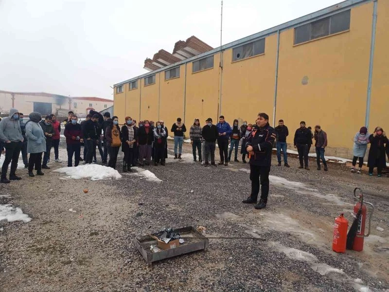 Afet ve Acil Durum Yönetimi Başkanlığı (AFAD) Malatya Müdürlüğü personelleri tarafından 2022 afet tatbikat yılı çerçevesinde organize sanayi bölgesindeki işletmelere yönelik afet farkındalık ve yangın farkındalık eğitimi sonrası söndürme ve tahliye tatbikatı gerçekleştirildi.