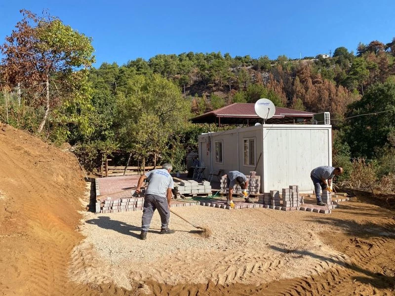 Gündoğmuş Karaisa Mahallesinde yangın felaketi sonrasında yerleştirilen prefabrik evlerin etrafında Antalya Büyükşehir Belediyesi Fen İşleri Dairesi Başkanlığına bağlı ekiplerince çalışma yapılıyor. Ekipler, prefabrik evlerin bulunduğu alana kilit taşı döşeyerek vatandaşların zorlu kış koşullarında rahat etmesi için çalışma gerçekleştiriyor.