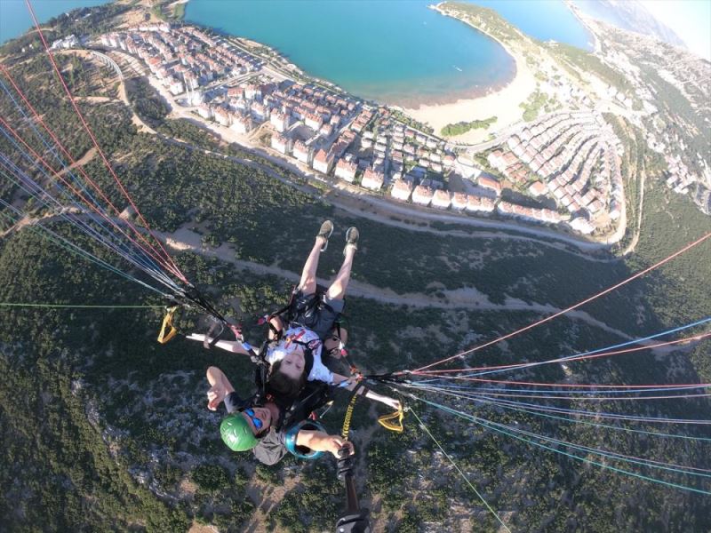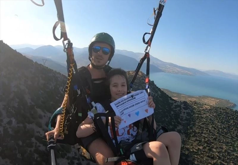 Babasina sürpriz yapmak isteyen ortaokul ögrencisi Öz, yamaç parasütü pilotu Samet Özata ile Egirdir ilçesindeki Karatepe mevkisine çikti.