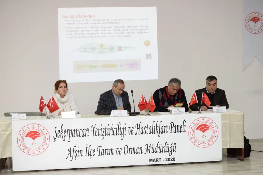 Panelin açılış konuşmasını yapan İl Tarım ve Orman Müdürü Mustafa Bozkurt, Afşin Belediyesi Kültür Evinde düzenlenen panelde, şeker pancarının Türkiye için stratejik bir ürün olduğunu belirtti. Türkiye'de şeker pancarı üretiminin 1950'li yıllardan itibaren gelişim gösterdiğini belirten BOZKURT "Dünya genelinde yılık şeker üretimi 180 milyon ton olarak kayıtlara geçmekte. Bunun yüzde 72 ila 78'i şekerkamışından, yüzde 22 ila 28'ide şeker pancarından elde edilmekte. Şeker kamışı ülkemizde yetişmediği için şekerimizi şeker pancarından temin ediyoruz. Dünya genelinde şeker üretiminde birinci sırada Rusya, ikinci sırada ABD, yıllık 2,5 milyon ton ile ülkemiz beşinci sırada yer alıyor. İhtiyacımız kadar şeker üretiyoruz." Dedi.