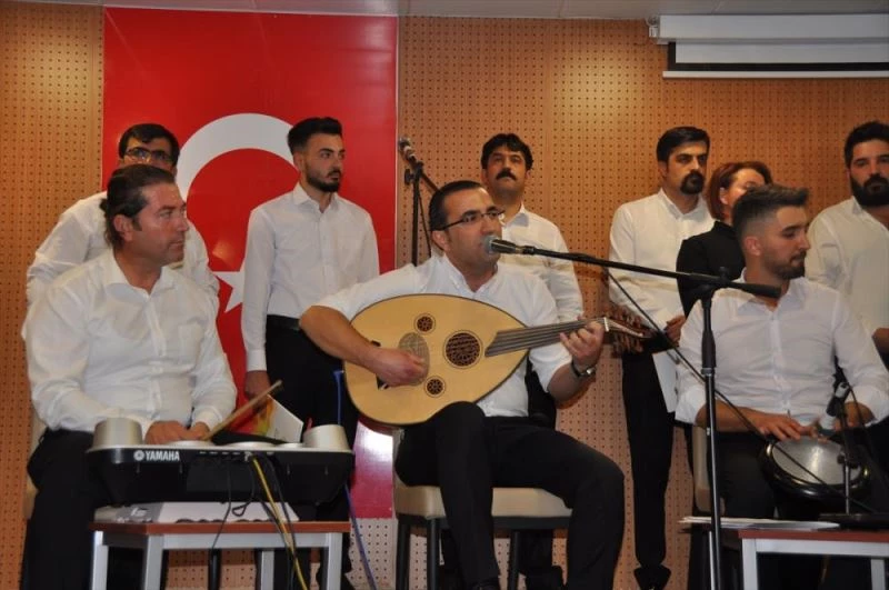 Afşin Kredi Yurtlar Kurumu Konferans Salonu'nda düzenlenen etkinlikte, Afşin Belediyesi Türk Müzik Topluluğu, İlker Kadir Yüksel şefliğinde koro ve solo olarak çeşitli halk ve sanat müziklerini seslendirdi.