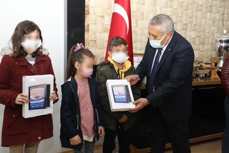 Afyonkarahisar Belediyesi’nin çocuklarımızın eğitimine büyük önem verdiğini kaydeden Belediye Başkanı Mehmet Zeybek, “Göreve geldiğimiz günden bu yana eğitime verdiğimiz desteğe bir yenisini daha ekleminin mutluluğunu yaşıyoruz. Hatırlanacağı üzere ilk ve ortaöğretim öğrencilerimize burs desteğimizin yanı sıra kırtasiye desteğimiz, son olarak ise başlattığımız kampanya neticesinde 500’e yakın öğrencimizin tablet ihtiyacını karşılıyoruz. Onların derslerinden geri kalmasına gönlümüz asla razı olamazdı. Arkadaşlarımızın yapmış olduğu titiz araştırmalar neticesinde öğrencimizi bizzat evlerinde ziyaret ederek tabletlerini teslim edeceğiz. Bu vesileyle ben tüm öğrencilerimize eğitim hayatlarında başarılar diliyorum. Belediye olarak her zaman onlara destek olmaya devam edeceğiz” dedi.