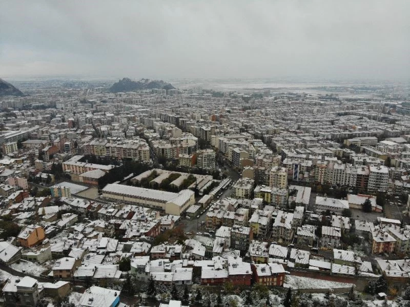 Kentte yağan kar yağışı sonrası ortaya çıkan manzarayı İhlas Haber Ajansı (İHA) kameramanları havadan drone ile görüntüledi.