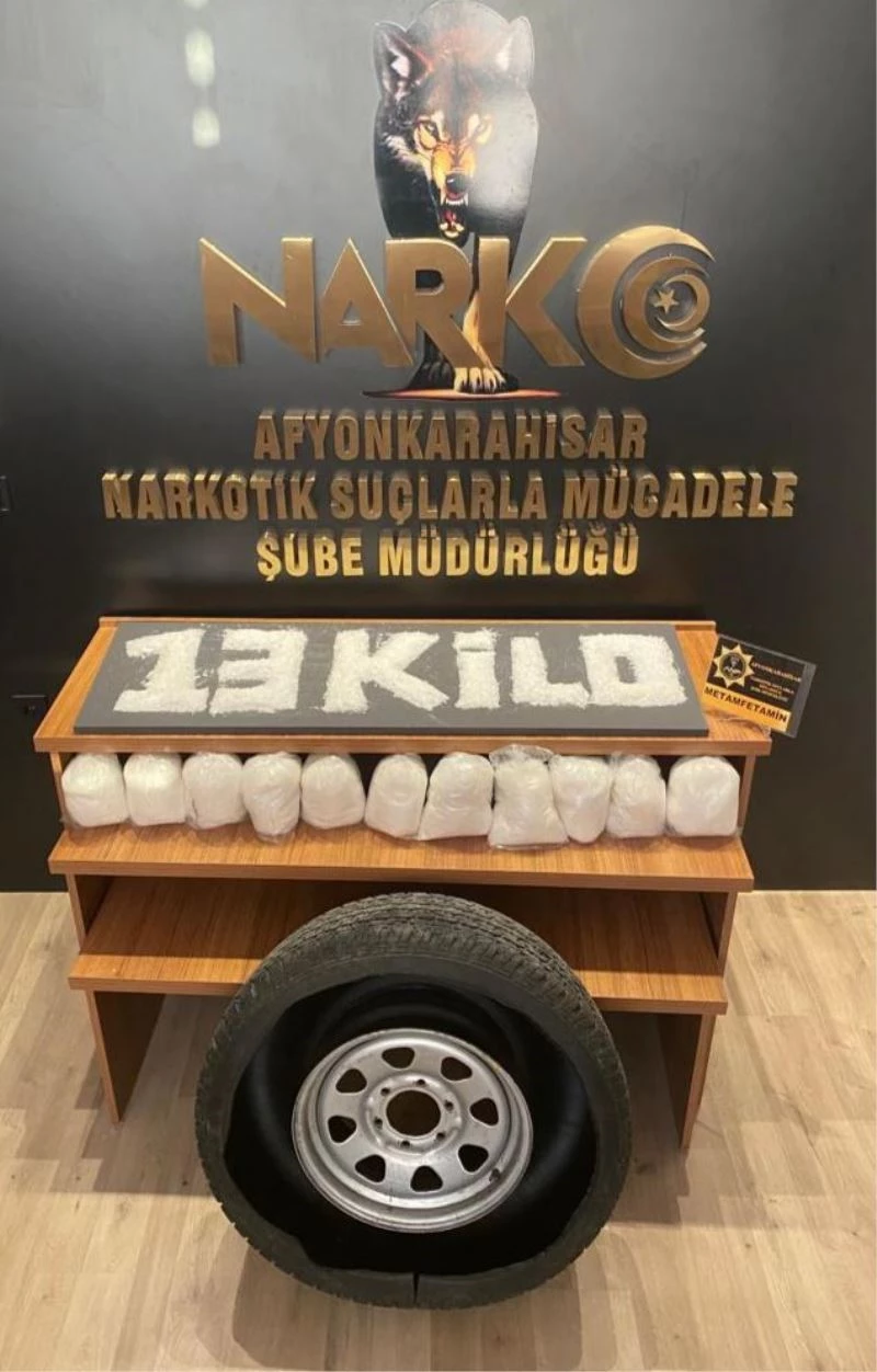 Olay, Afyonkarahisar-Kütahya kara yolu Karahisar Köprülü kavşağı yakınlarında meydana geldi. Edinilen bilgilere göre, biri arazi aracı olmak üzere iki aracın öncü artçı şeklinde ilerlediğini tespit eden İl Emniyet Müdürlüğüne bağlı Narkotik Suçlarla Mücadele Şube Müdürlüğü ekipleri araçları takibe aldı. Gerekli güvenlik önlemlerini aldıktan sonra araçları durduran polis ekipleri ardından arama yaptı. Eğitimli narkotik köpeklerin de kullandığı aramada arazi aracının stepne lastiğine köpeğin tepki vermesi üzerine lastik yerinden söküldü. Ardından havası alınan lastik polis tarafından levyeyle janttan söküldü. Sökülen lastiğin içinde ekipler toplam ağırlığı 13 kilogram olan metanfetamin isimli uyuşturucu ele geçirdi.