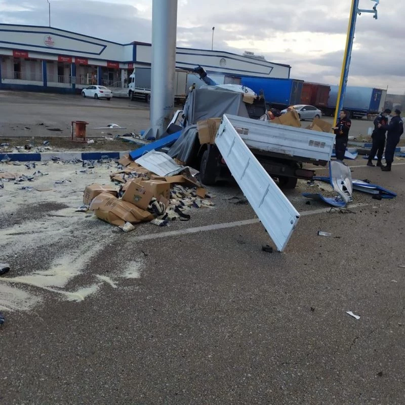 Afyonkarahisar-İzmir karayolunda kamyonet sürücüsü direksiyon hakimiyetini kaybetmesi sonucu akaryakıt istasyonunun tabelasına çarparak kaza yaptı. Feci kazada 1 kişi hayatını kaybederken 1 kişi de ağır yaralandı.