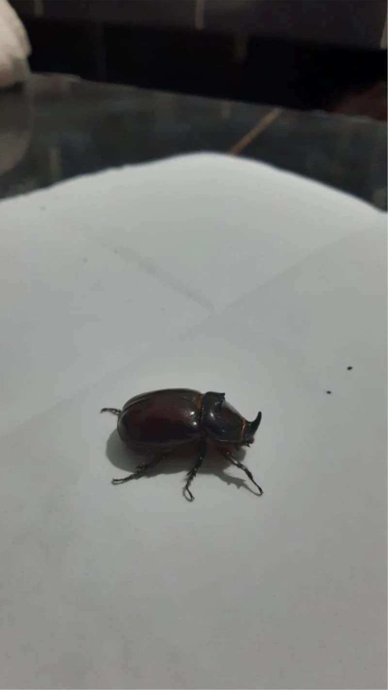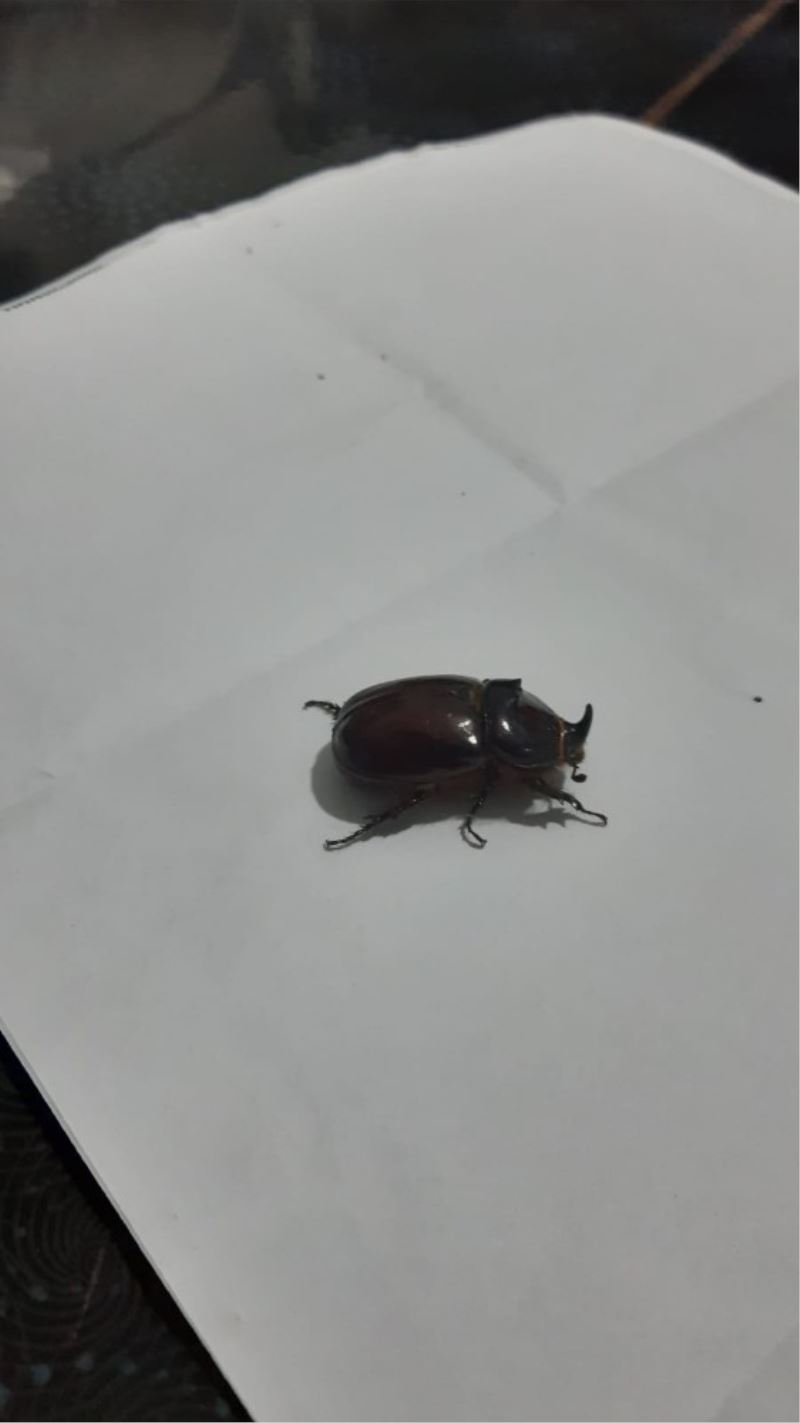 Gergedan böceğini gören kahve sakinlerinden Musa Yılmaz, ’’Kahvenin önünde oturuyorduk, bir anda uçarak geldi buraya ve kafama çarparak yere düştü. Bizde ilgilendik kaldırıp masaya koyduk. Bu şekilde yetkililere teslim ettik’’ dedi.