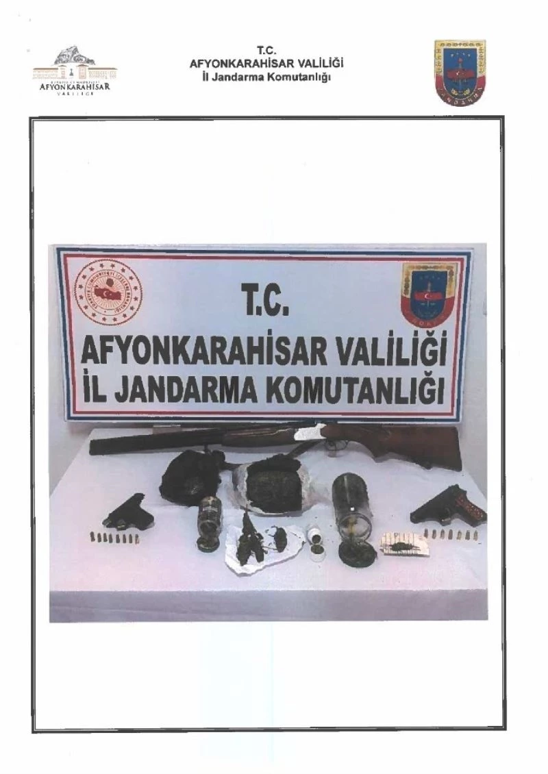 Edinilen bilgilere göre; İl Jandarma Komutanlığı aldıkları bir ihbarı değerlendirerek Afyonkarahisar’ın Çay ilçesine bağlı Yeşilyurt Köyü’nde bir operasyon gerçekleştirdi. Bu çerçevede jandarma ekiplerince şüpheli E.K ile E.K’nin ikametinde yapılan aramada; kubar esrar maddesi, 52 gram kenevir tohumu, 1 adet ruhsatsız av tüfeği, 2 adet ruhsatsız tabanca, 17 adet mermi 2 adet tabanca şarjörü ele geçirildi. Olay ile ilgili olarak 2 şüpheli şahıs gözaltına alındı.