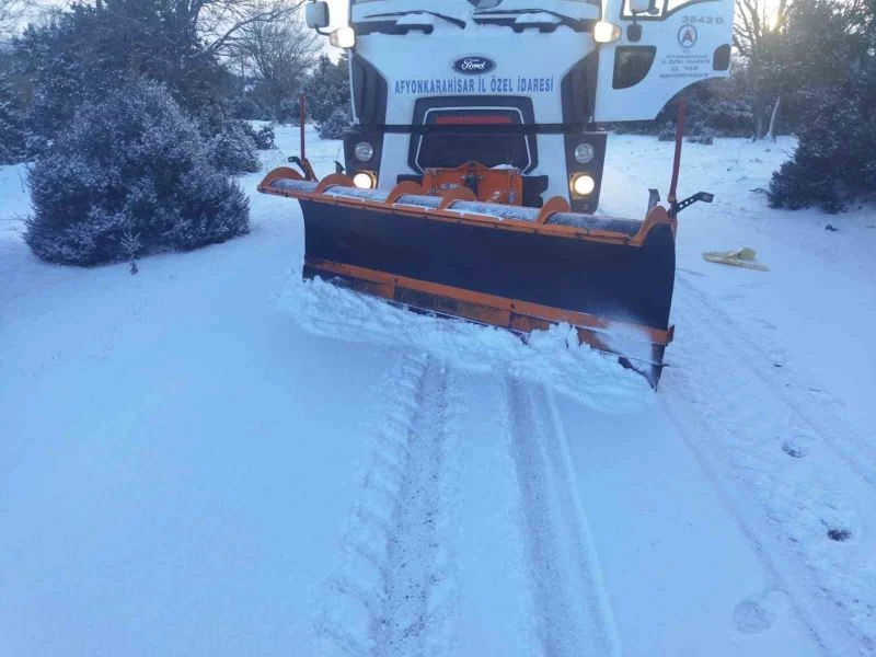 Kar yağışının etkili olduğu Afyonkarahisar’da İl Özel İdaresi’ne bağlı ekipler karla mücadele çalışmalarına ağırlık verirken, ekipler köy yollarını açık tutmak için yoğun mesai harcıyor.
