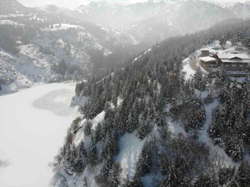 Afyonkarahisar’da yaklaşık 2 haftadan bu yana aralıklarla devam eden kar yağışı sonrası donan Erkmen Baraj Göleti ve çevresinde kar altında kalan ağaçlar adeta bir kış masalı görüntüsü oluşturdu.