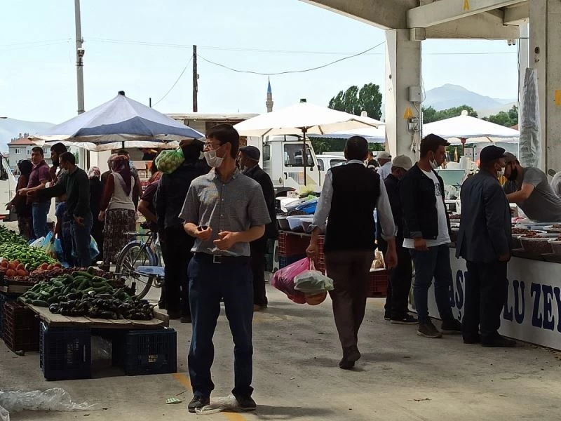 Afyonkarahisar’da kurulan pazar yerinde sosyal mesafeyi yine hiçe saydılar