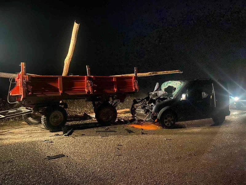 Olay, saat 21.00 sularında Afyonkarahisar’ın Bolvadin ilçesine bağlı Derebağköy yolunda meydana geldi. Edinilen bilgilere göre, M.Ö. yönetimindeki 03 ACF 958 plakalı hafif ticari araç aynı istikamette önünde seyreden H.H.U. idaresindeki 03 KV 844 plakalı traktöre bağlı römorka arkadan çarptı. İhbar üzerine olay yerine 112 acil servis ile polis ekipleri sevk edildi.