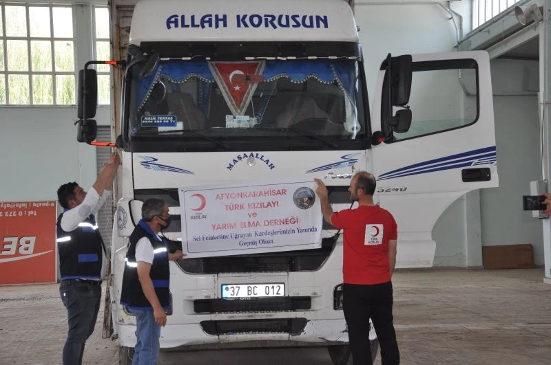 Türk Kızılayı Afyonkarahisar Şubesi ile Yarım Elma Sosyal Yardımlaşma Dayanışma Derneği işbirliğiyle hazırlanan ve içerisinde 400 bin TL değerinde yardım malzemesinin bulunduğu tır Kastamonu’ya gönderildi.