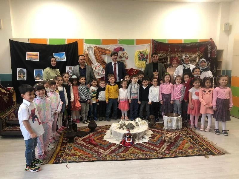 Anasınıfı Öğretmeni Gökçen Postalcıoğlu’nun koordinatörlüğünde yapılan etkinliğe İl Milli Eğitim Müdürü Metin Yalçın, Okul Müdürü Abdullah Demir ve müdür yardımcıları katıldı. Postalcıoğlu, etkinlikte öğrencilerine Afyonkarahisar’ın yöresel yemek kültürünü tanıttı. Yöresel tanıtım organizasyonunun da yapıldığı etkinlikte, Anasınıfı öğretmeni Postalcıoğlu; ana sınıfını yöresel kıyafetler ve eski otantik eşyalar ile süslemeyi de unutmadı. Gerçekleşen etkinlikte Minik Bilginler sınıfı öğrencileri, geleneksel giysileri ve eşyaları görerek öğrenmiş oldu. Afyonkarahisar’ın ana yemeklerinden olan Afyon kebabı, keşkek, göce köftesi, bamya, patlıcan böreği, patlıcan musakka, etli ve zeytinyağlı sarma, mercimekli patatesli bükme, pakmayalı bükme, üstü kaymaklı ekmek kadayıfı, pirinç unu muhallebi, kalbura bastı yapılan yemekler arasında yer aldı. Folklor ekibinin Afyonkarahisar ezgileri ile oynadığı oyun sonrası; Milli Eğitim Müdürü Metin Yalçın, Okul Müdürü Abdullah Demir ve müdür yardımcısının katılımı ile oluşan protokol ile sınıf velilerine yemekler ikram edildi.