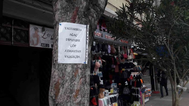 Eskişehir’de cadde üzerinde bir ağacın üzerine tutturulan ‘Yalvarırım ağaç diplerine çöp atmaktan vazgeçin’ yazılı kâğıt dikkat çekti.