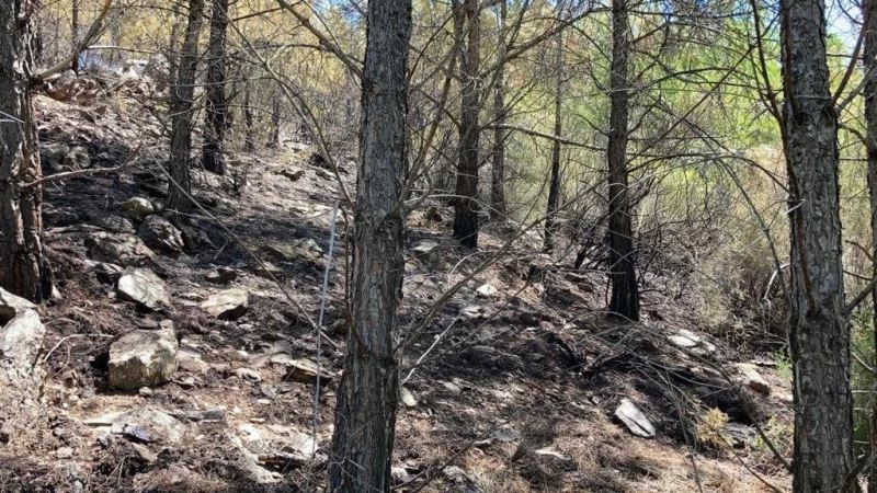 Mersin’in Anamur ilçesinde yıldırım düşmesi sonucu çıkan yangında 2 dönümlük kızılçam ormanı kül oldu.