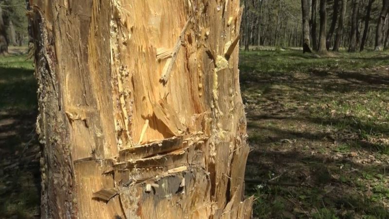 Çıraları için zarar gören bazı çam ağaçların inceltildikleri yerden kırılmak üzere olduğu da kameralara yansıdı.