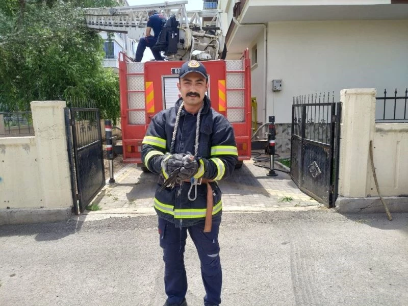 Aksaray’da ağaç üzerinde bulunan ipe ayağı dolanan ve ağaçta mahsur kalan karga yavrusu itfaiye ekiplerinin müdahalesiyle kurtarıldı. Ayağında oluşan yara nedeniyle yavru karga, veterinere teslim edildi.