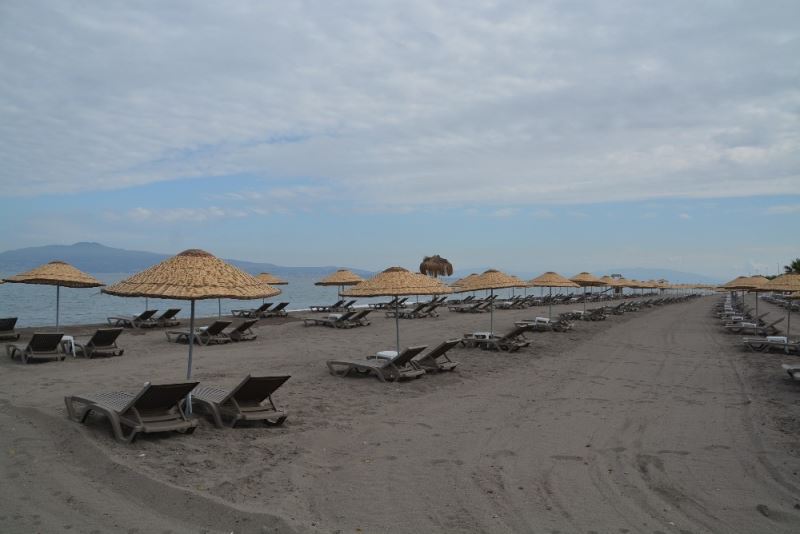 Öte yandan, plajda şezlong sayısı yarıya indirildi. Şezlongların, her kullanımdan sonra dezenfekte edildiği, 20 dakika sonra tekrar başka kişiye teslim edildiği kaydedildi. Duşlar ve tuvaletlerinde sosyal mesafe kurallarına göre kullanılacağı ve sürekli dezenfekte edileceği aktarıldı.