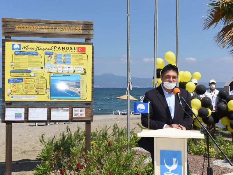 Aliağa Belediye Başkanı Serkan Acar da yaptığı konuşmada mavi bayrak kriterlerini korumanın önemine işaret etti. Acar, “İlk mavi bayrağımızı 2017 yılı yazında asmıştık. Mavi bayrak almak çok önemliydi ama daha da önemlisi bunu koruyabilmekti. Ne mutlu ki aralıksız olarak 4. defa mavi bayrağımızı burada dalgalandıracağız. Biz bir sanayi şehriyiz ama sanayimiz kadar denizimiz, plajlarımız, doğamız, tarihimiz var. Biz bu güzelliklerimizi de öne çıkarmak istiyoruz. Mavi bayraklı bir plajda başta her 15 günde bir deniz suyu analizleri yapılıyor, cankurtaran, sağlık ve güvenlik gibi 33 kritere sahip olmak gerekiyor. Biz Aliağalılar olarak 4. defa bu kriterlere sahip olmanın haklı gururunu ve onurunu yaşıyoruz. Bu yıl sezon açılışımız pandemi nedeniyle biraz farklı. Bu yıl bir de pandemi kriterleri var. Hijyen, sağlık ve sosyal mesafenin daha da önemli olduğu bu süreçte mavi bayraklı plajların önemi ve değeri daha da arttı. Bu tesisimizi sezona hazırlayan, işletmeci Aliağa Spor Futbol kulübü A.Ş.’ye, kulüp başkanımız Kamil Önal’a ve emeği geçen herkese çok teşekkür ediyorum. Tüm halkımızı sağlıklı, güvenli ve keyifli tatil yapabilecekleri Aliağa Ağapark plajımıza bekliyoruz” sözlerine yer verdi.
