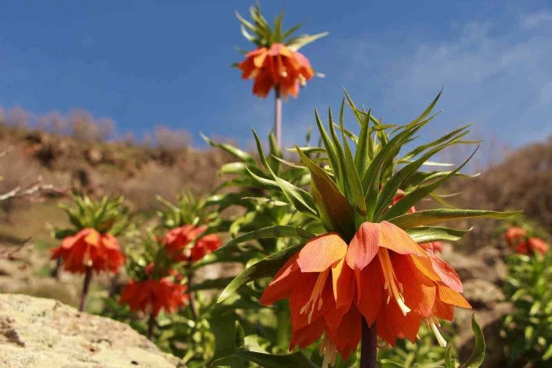 Doğu ve Güneydoğu Anadolu Bölgesi’nin yüksek rakımlı dağlarını süsleyen ve halk arasında ’ağlayan gelin’ olarak nitelendirilen ters laleler, Bingöl’ün dağlarında görsel şölen oluşturdu.