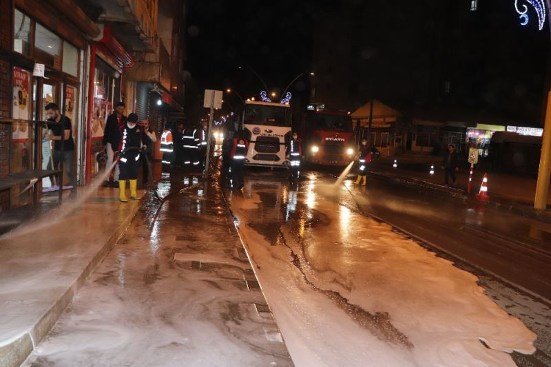 Ağrı Belediyesi, Korona virüs salgını tedbirleri kapsamında başlattığı faaliyetlere devam ediyor. Ramazan Bayramı öncesinde şehir genelinde temizlik seferberliği başlatan ekipler mesai mefhumu gözetmeksizin gece-gündüz çalışmalarına devam ediyor. Ağrı Belediye Başkanı Savcı Sayan’ın talimatları doğrultusunda İtfaiye Müdürlüğüne bağlı ekipler, köpükle cadde yıkama çalışmaları gerçekleştiriyor. Ekiplerin, kentin farklı yerlerinde yürüttüğü yıkama çalışmaları tüm cadde ve sokaklar tamamlanana kadar devam edecek.