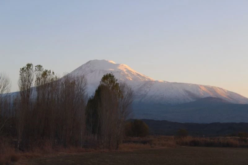 Türkiye ve Avrupa’nın en yüksek dağı olan 5137 metre rakımlı Ağrı Dağı, bölgede etkili olan kar yağışı ile beyaza büründü. Ağrı Dağı, Iğdır Ovası’nın yeşili ve gökyüzünün maviliği ile bütünleşerek görenleri kendine hayran bıraktı. Dört mevsim muhteşem görüntüsü ile dikkat çeken Ağrı Dağı’nın yanı sıra bölgede Pamuk Dağı gibi diğer birçok dağa da kar düştü.