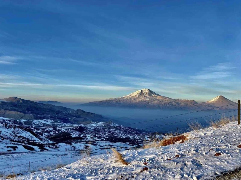 Ağrı’nın Doğubayazıt ilçesinde bulunan ve deniz seviyesinden 5 bin 137 metre yüksekliği ile Türkiye’nin en yüksek dağı olma özelliğini taşıyan Ağrı Dağı, zirvesindeki beyaz örtüsüyle adeta göz kamaştırıyor.