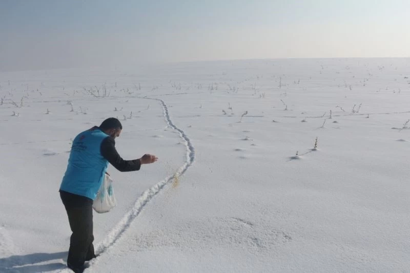 Ağrı’da bir süredir etkili olan kar yağışı nedeniyle, Ağrı İl Müftü Yardımcısı Kemal Arpacı, Türkiye Diyanet Vakfı Ağrı Şube sorumlusu Emrah Kaya ile birlikte yiyecek bulmakta zorluk yaşayan yaban hayvanlarının aç kalmaması için karlı arazide yemleme çalışması gerçekleştirdi.