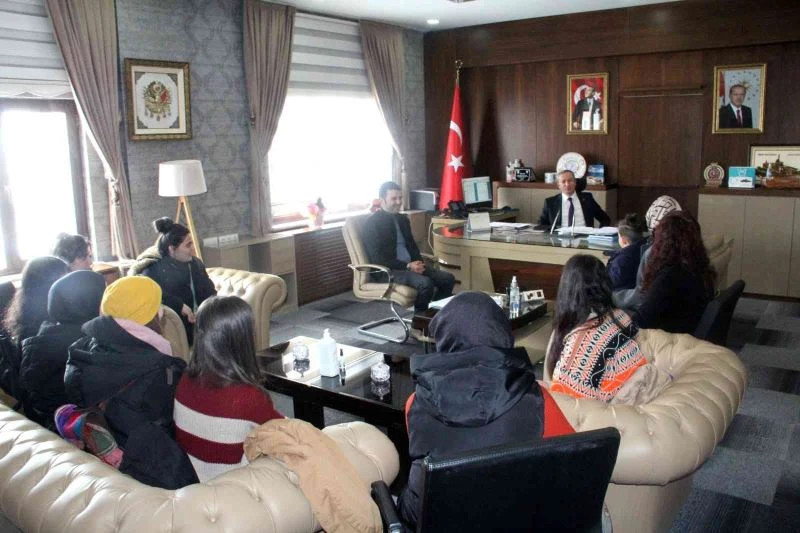 Ağrı İl Milli Eğitim Müdürü Hasan Kökrek, Doğubayazıt Şehit Polis Fethi Sekin Mesleki ve Teknik Anadolu Lisesince hazırlanan ve Türkiye Ulusal Ajans’ı tarafından kabul edilen “Benim Altın Bileziğim Mesleğim” isimli Erasmus+ projesi kapsamında İspanya’ya gitmeden önce öğrencileri makamında kabul etti.