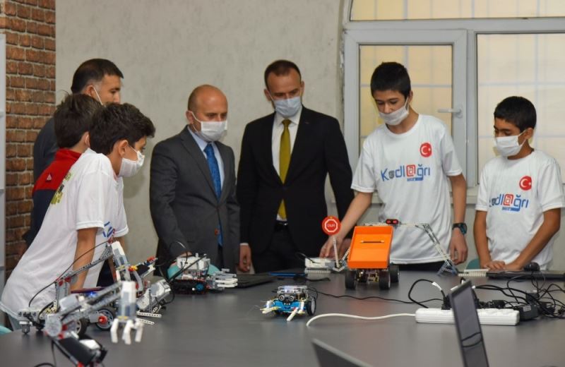 Ağrı Valisi Dr. Osman Varol, Vali Yardımcısı Yusuf Cıbır ve İl Milli Eğitim Müdürü Mehmet Faruk Tekin ile birlikte ilk olarak Start-Up Cafe’yi ziyaret ederek incelemelerde bulundu. “KODLAĞRI” projesi kapsamında öğrencilerin yaptıkları robotik çalışmaları tek tek inceleyen Vali Dr. Varol, öğrencilerden bilgiler aldı. Bir süre öğrencilerle sohbet eden Vali Dr. Varol, daha sonra İl Halk Kütüphanesini ziyaret ederek Yükseköğretim Kurumları Sınavına (YKS) hazırlanan öğrencilere motivasyon ziyaretinde bulundu. Öğrencilerle sınava hazırlıkları konusunda sohbet eden Vali Dr. Varol, öğrencilere başarılar diledi.