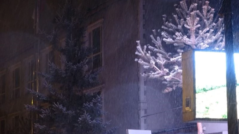 Ağrı’da akşam saatlerinde başlayan kar yağışı kenti beyaza bürüdü.