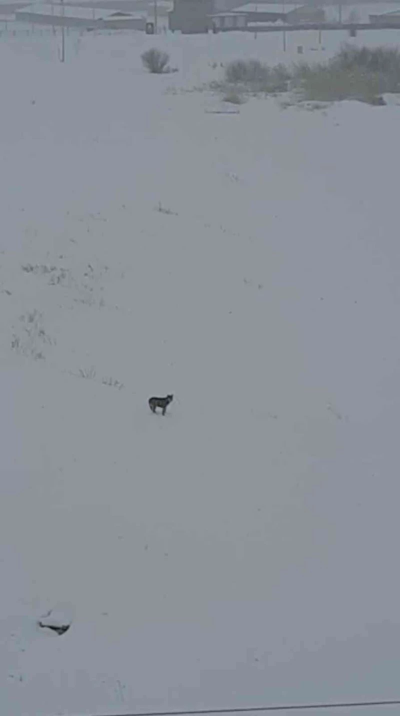 Ağrı’da etkisini sürdüren soğuk hava ve kar yağışı nedeniyle yiyecek bulamayan bir kurt, şehir merkezine indi. Evlerin bulunduğu alanda gezinen kurt, vatandaşların telefon kamerasına yansıdı.