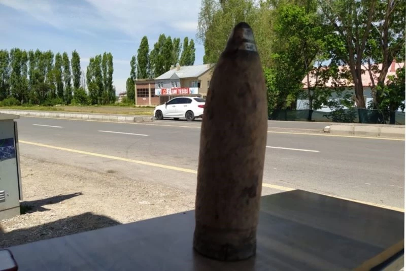 Ağrı’da bir vatandaş bahçesindeki hafriyatları karıştırırken patlamamış top mermisi buldu.