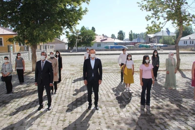 Ağrı’da 2020-2021 eğitim-öğretim yılı, İsmet Ömeroğlu İlköğretim Okulu’nda çalınan zil ile birlikte başladı.