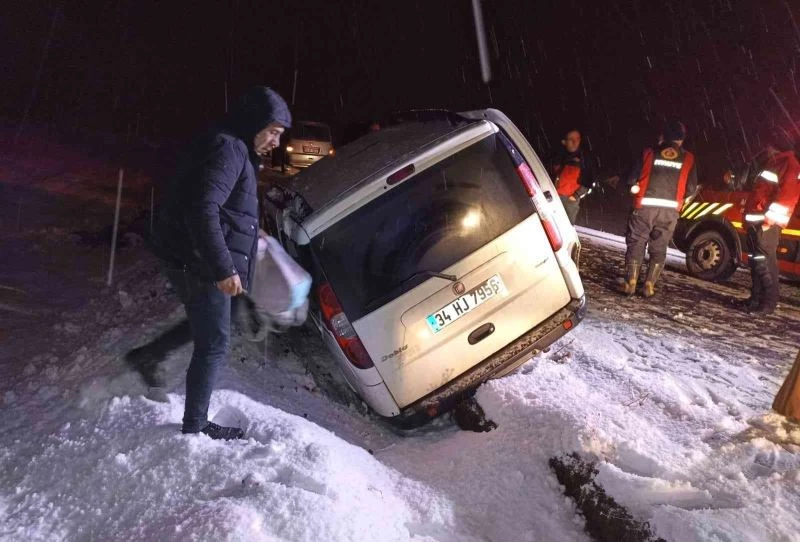 Ağrı’da kar yağışı nedeniyle kayganlaşan yolda kontrolden çıkan aracın kaza yapması sonucu 3 kişi yaralandı.