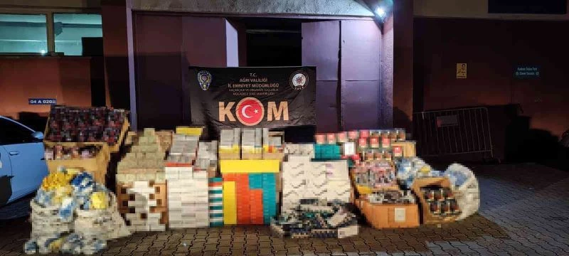 Ağrı Kaçakçılık ve Organize Suçlarla Mücadele Şube Müdürlüğü görevlilerince, kaçakçılık faaliyetlerinin deşifresi ve önlenmesine yönelik yapılan çalışmalarda, bir kargo firması aracılığıyla Ağrı’dan İstanbul, Ankara, Mersin, Balıkesir, Antalya ve Konya gibi batı illerine kaçak mallarının gönderileceğine dair 3 aylık yapılan teknik ve fiziki takip çalışmaları sonucunda, uygulama noktasında yoğun bir arama yapıldı. Yapılan çalışmalar çerçevesinde durdurulan bir araçta gerçekleştirilen aramalarda, toplam değeri 2 milyon 750 bin lira değerinde olan bin 280 paket çeşitli markalarda gümrük kaçağı sigara, 9 bin 600 adet tütün sarma kağıdı, 6 bin 500 paket elektronik sigara tütünü, gümrük kaçağı olduğu değerlendirilen bin 800 adet çocuk kol saati, 195 adet çocuk akıllı kol saati, 900 adet oyuncak, 180 adet gözlük, bin 50 adet bez eldiven, 280 adet yabancı marka ibareli bıçak 40 paket çay ele geçirildi.