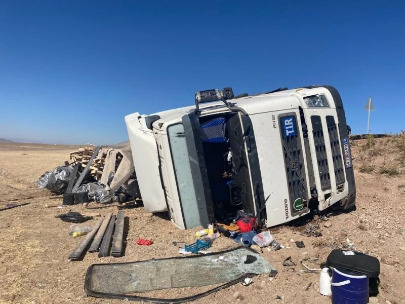 Ağrı’nın Taşlıçay ilçesinde direksiyon hakimiyetini kaybeden İranlı sürücünün kullandığı tır devrildi.