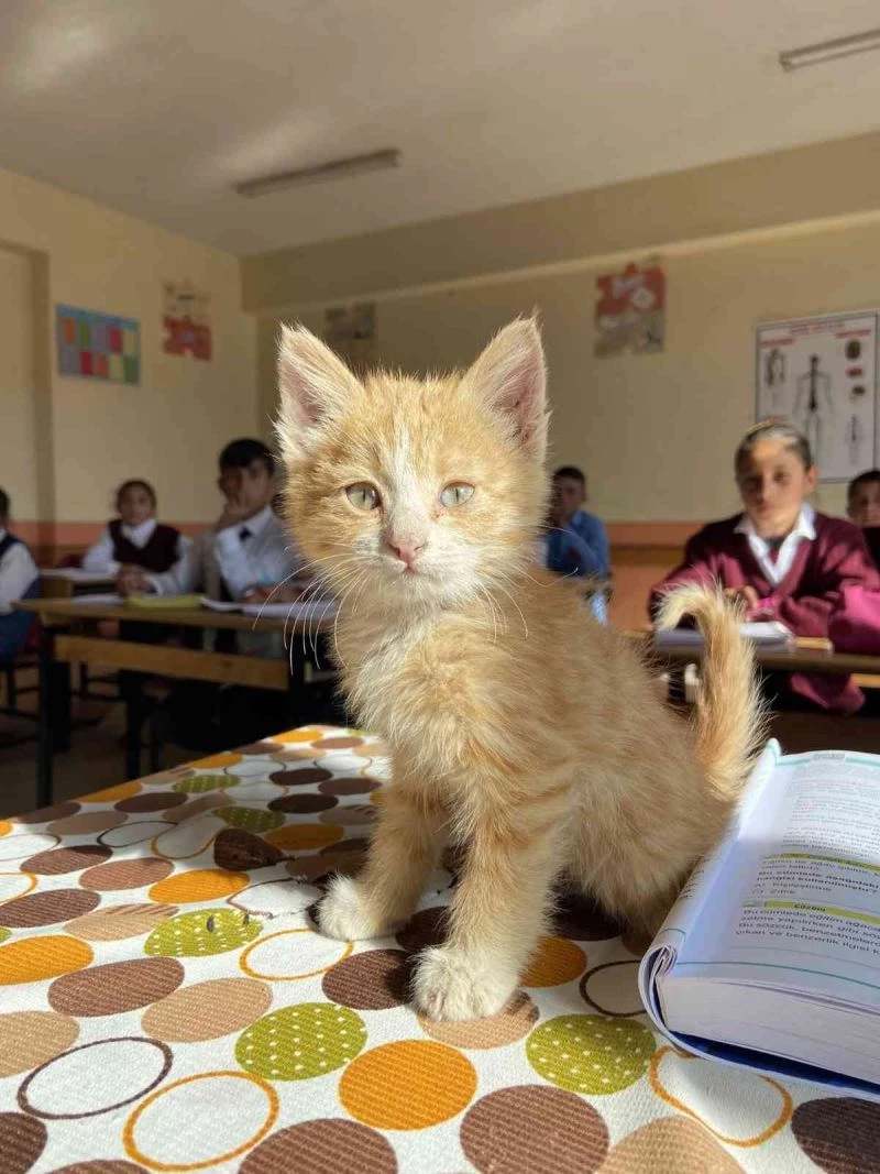 Ağrı’da öğrencilerin sahiplendiği yavru kedi ’Mandalina’ okulun maskotu oldu