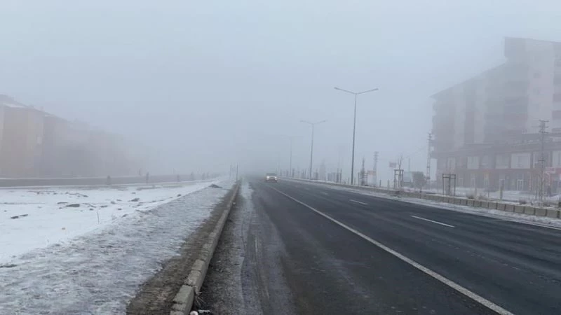 Ağrı’da sabah erken saatlerde yoğun sis etkili oldu. Kent merkezinde oluşan sis bulutu nedeniyle görüş mesafesi 30-35 metreye kadar düşerken, sürücüler trafikte ilerleyebilmek için araçlarının farlarını yakarak düşük hızda seyretti.