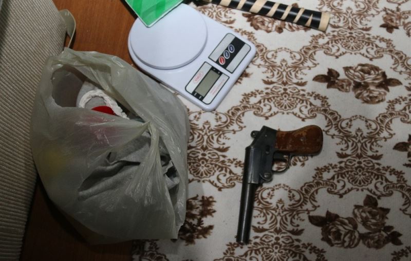 -219,4 gram metamfetamin maddesi, 61,06 gram esrar maddesi, 3 adet extacy hap, 0,45 gram sentetik kannobinoid (Bonzai) maddesi, 1 adet hassas terazi, 2 adet av tüfeği, 51 adet av tüfeği fişeği, 3 adet ruhsatsız tabanca, 4 adet 9x19 tabanca fişeği, 1 adet tüfek şarjörü ele geçirilmiştir.