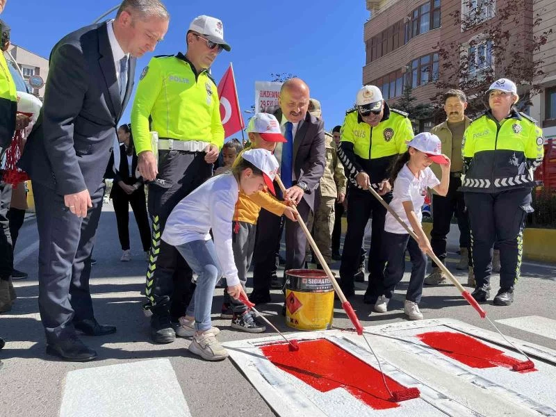 Kampanya çerçevesinde bir yaya geçidi öğrenciler ve protokol üyeleri tarafından kırmızıya boyandı.