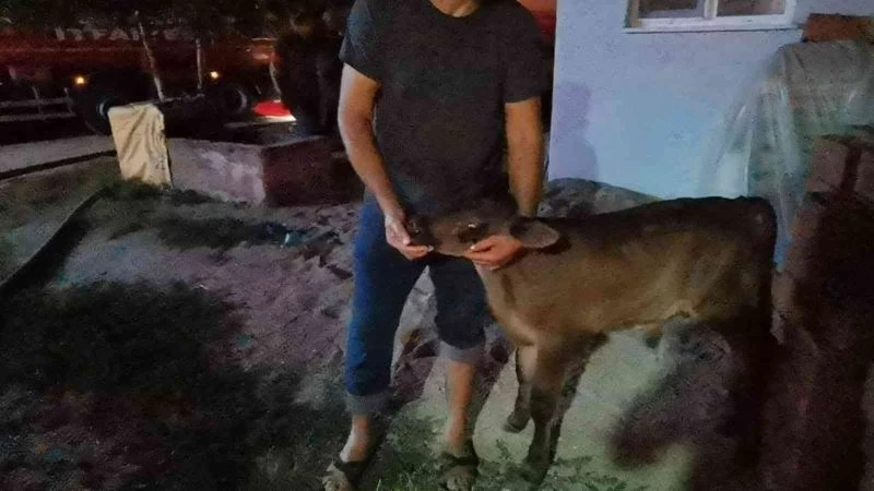 Yangında annesi telef olan buzağı, vatandaşların parmaklarını emdi. Buzağıyı görenler, duygulu anlar yaşadı. Yangın sonucu Gültekin ailesi, işsiz kaldı. Yetkililerin aileye yardım etmesi bekleniyor.
