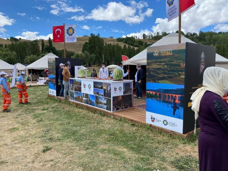 Diyarbakır Büyükşehir Belediyesi, Kültürel kimliğiyle, yalnız Türkiye’nin değil, tüm dünyanın da en önemli kentlerinden biri sayılan, 12 bin yılla aşkın kesintisiz kent yaşamı ile 33 medeniyete ev sahipsizliği yapan Diyarbakır tarihini Ahlat Otağında açtığı stantla tanıtıyor. Kentin sayısız eserlerinin başında gelen ve UNESCO Dünya Kültür Mirası Listesi’nde yer alan Diyarbakır surlarının tarih içindeki yaşanmışlıkları fotoğraflar ve belgelerle ziyaretçilere sunan Büyükşehir Belediyesi, irilikleriyle dünyaca meşhur ve Türk Patent Kurumu tarafından Diyarbakır’da tescillenen 8 üründen biri olan Diyarbakır karpuzlarını da ziyaretçilerle buluşturuyor.
