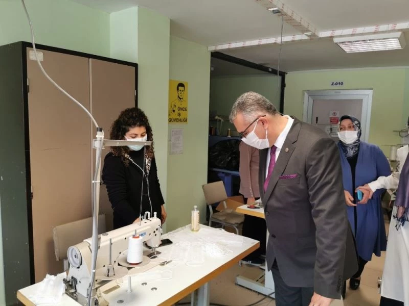 AK Parti Kadın Kolları Başkanı Meryem Demir ile birlikte maske üretimi yapan atölyeleri ziyaret eden Ahlatcı, partili kadınlara bu süreçte gösterdikleri özverili çalışmadan dolayı teşekkür etti.