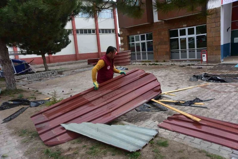 Bitlis’in Ahlat ilçesinde etkili olan şiddetli rüzgar ve fırtına nedeniyle gençlik merkezinin çatısı uçtu.