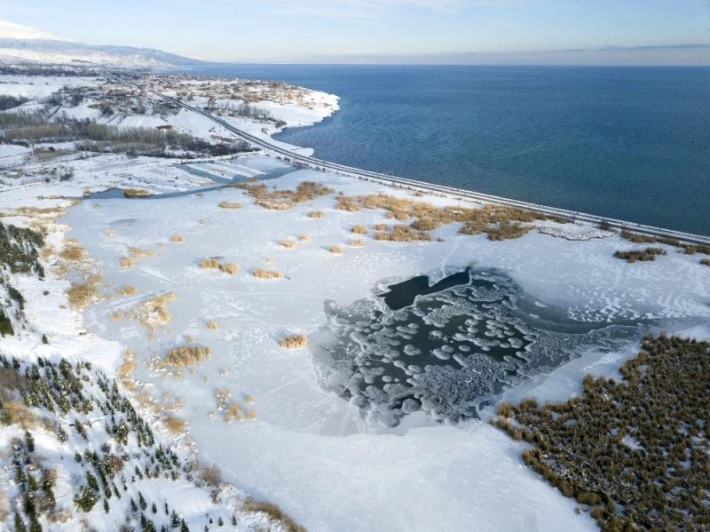 Bitlis’in Ahlat ilçesinde bulunan Vali Uğur Boran Kuş Cenneti şiddetli soğuklar nedeniyle dondu.