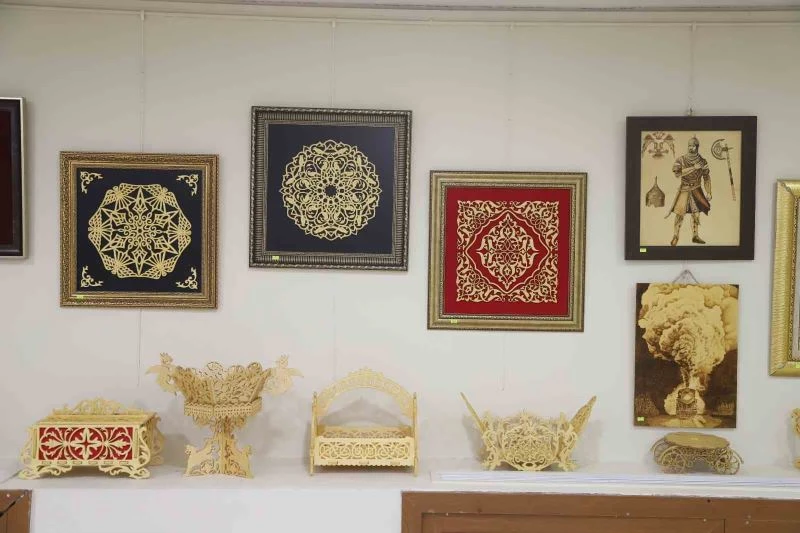 Ahşap El Sanatları Sergisi, 200’e yakın eserden oluşuyor. Sanatçının yoğun ve titiz çalışmalarıyla ortaya çıkan eserlerin yapımında birden fazla teknik göze çarpıyor.